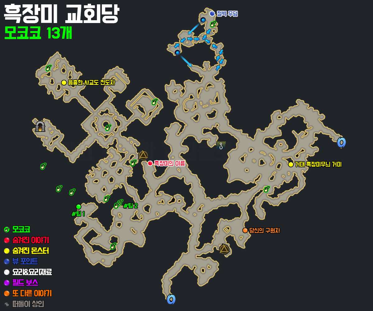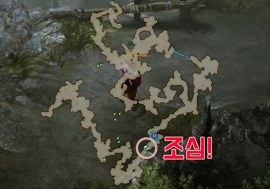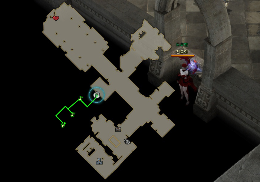 입구에서 보스방 앞까지 던전 내에 있는
