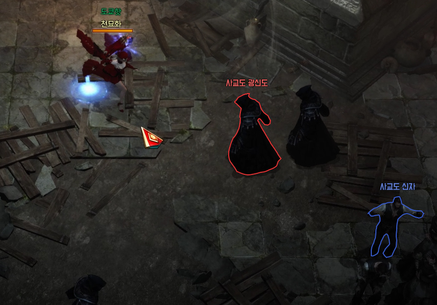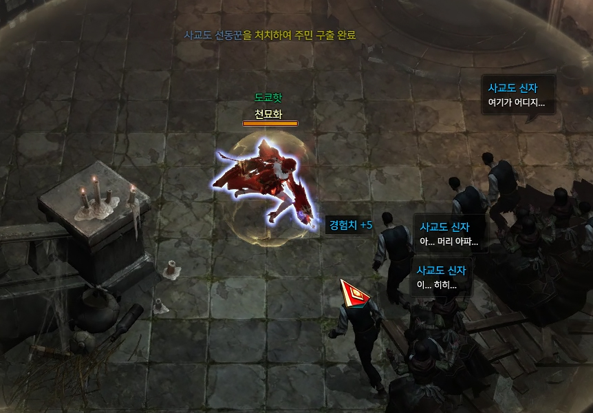 사교도 광신도의 어그로를 끌어서 안전하게 평타로 처치해줍니다.