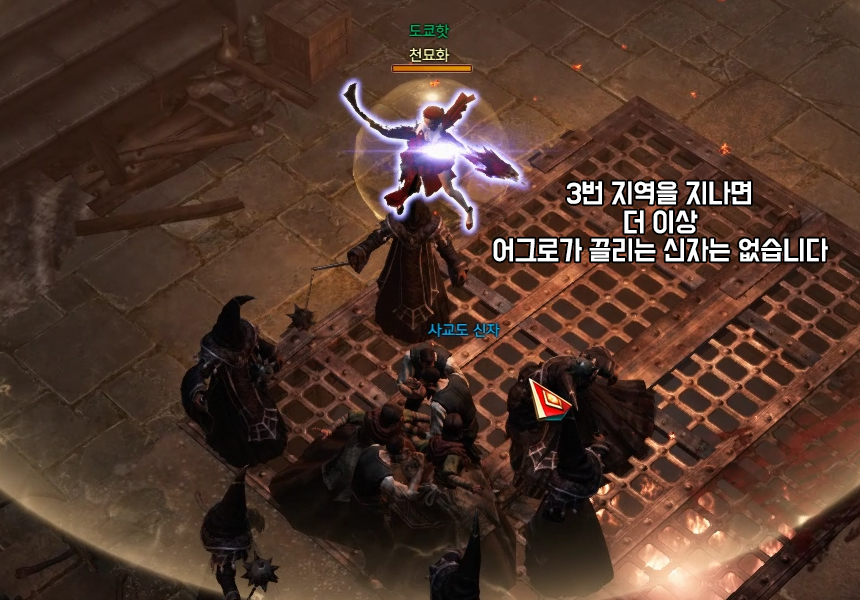 사교도 신자 1,2,3구역에서는 광역 스킬 X