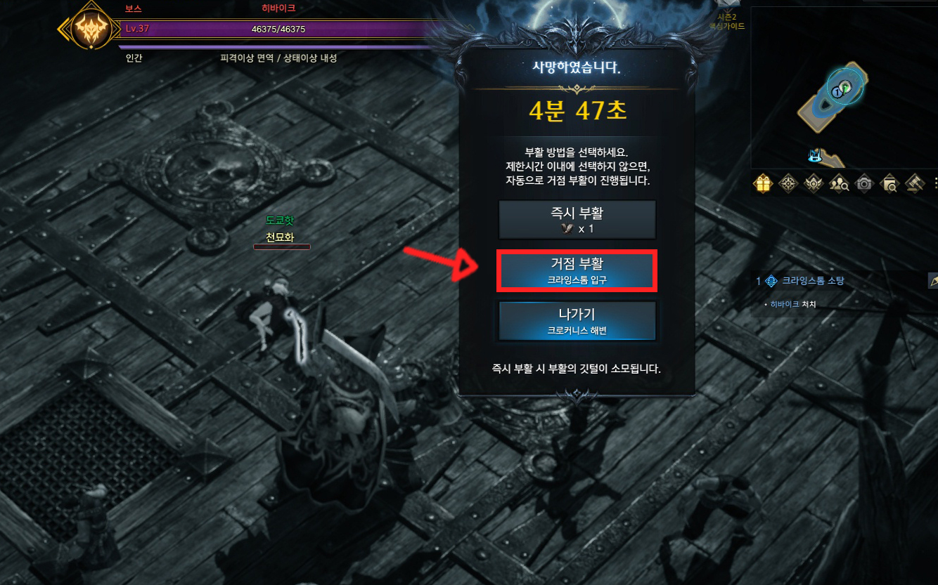 그리고 던전 입구로 부활해서