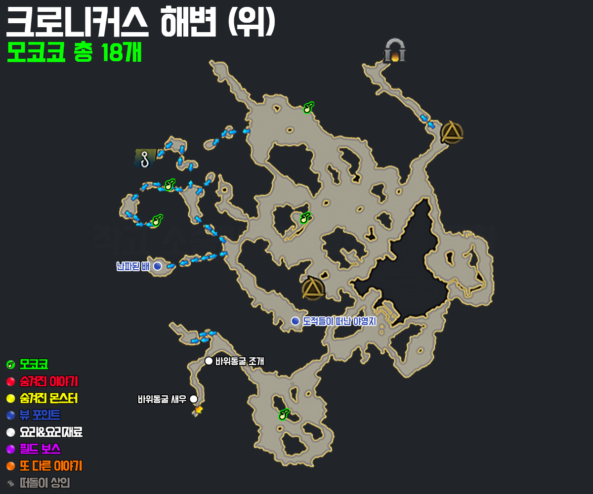 └ 바위동굴 새우, 바위동굴 조개 - 크로니커스 해변에서 획득할 수 있습니다.