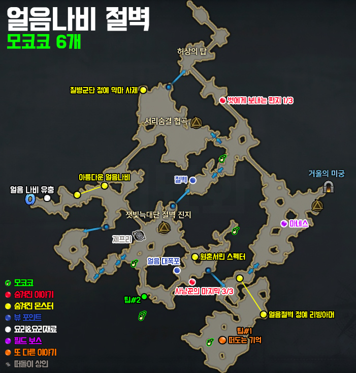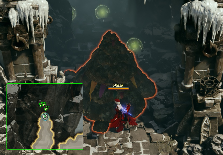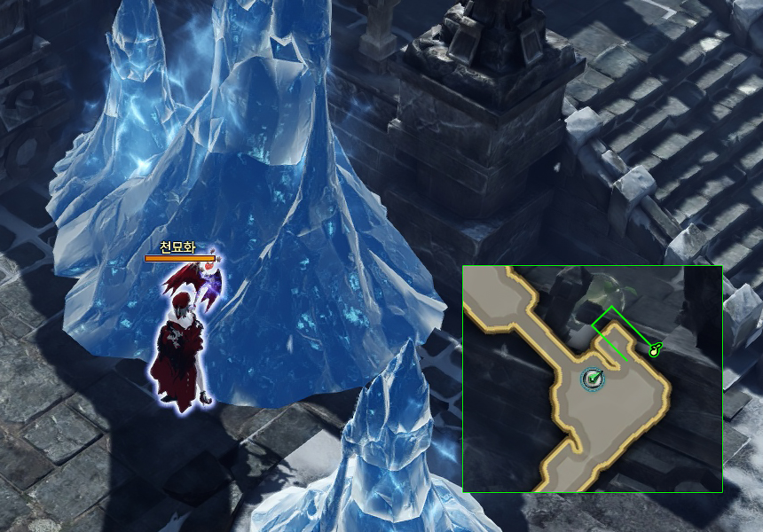해당 위치까지 모든 몬스터를 잡고 모든 얼음 석상들을 부숴주세요.
