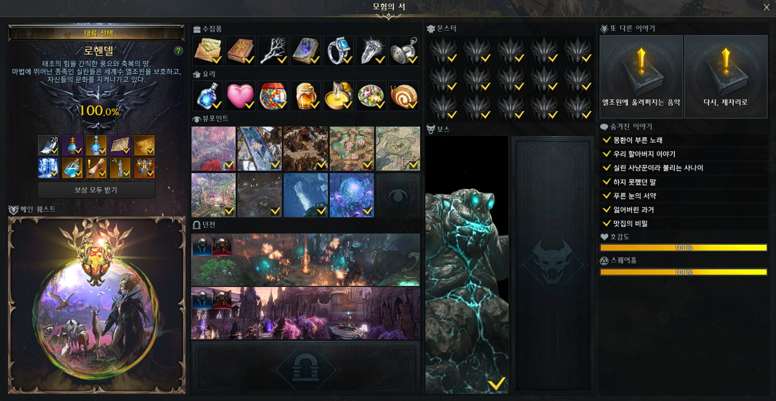 로헨델 모험의 서 60% 달성 보상 영원의 노래