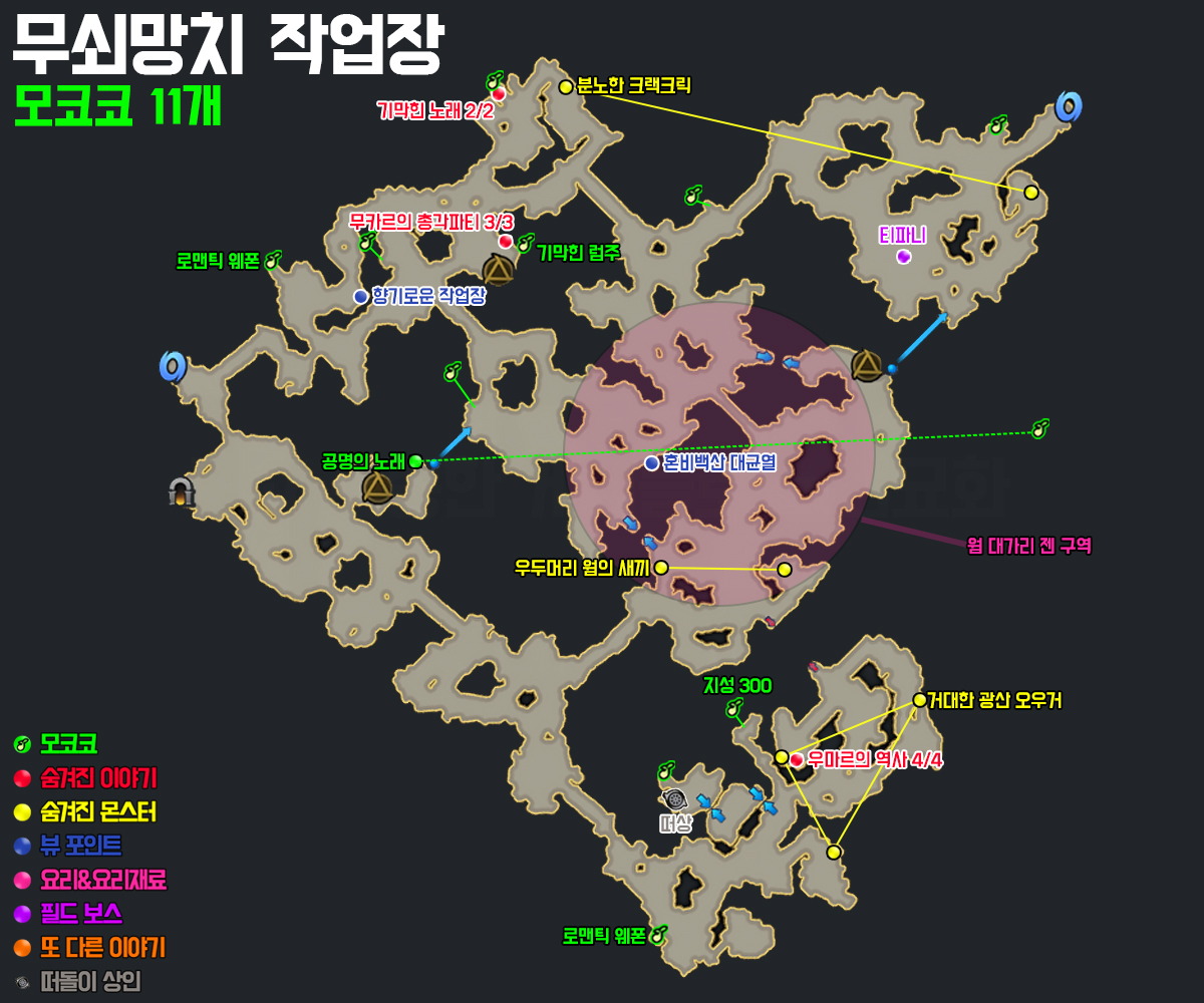 웜 대가리 젤리의 재료 갓 잡은 웜 대가리의 젠 구역 확인해주세요.