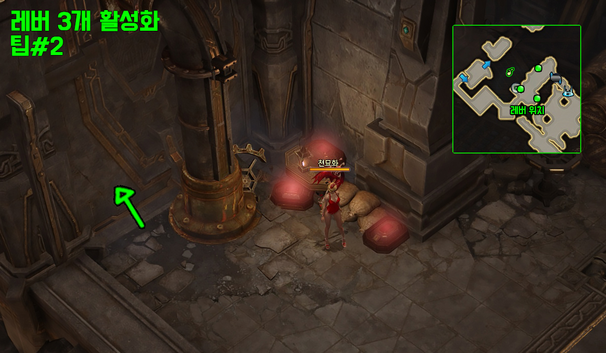 레버 3개를 상호작용하면 숨겨진 공간으로 이동 가능합니다.