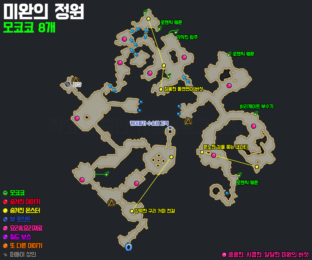 ※ 미완의 정원 특정 포인트에서 나옵니다. (버섯 종류 랜덤)