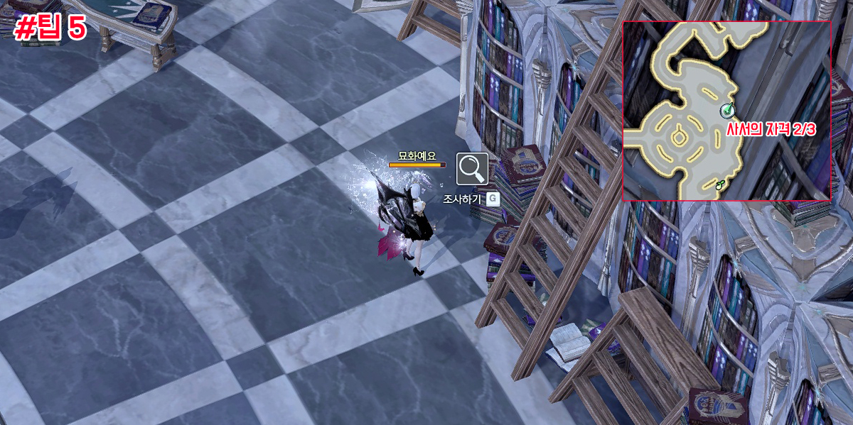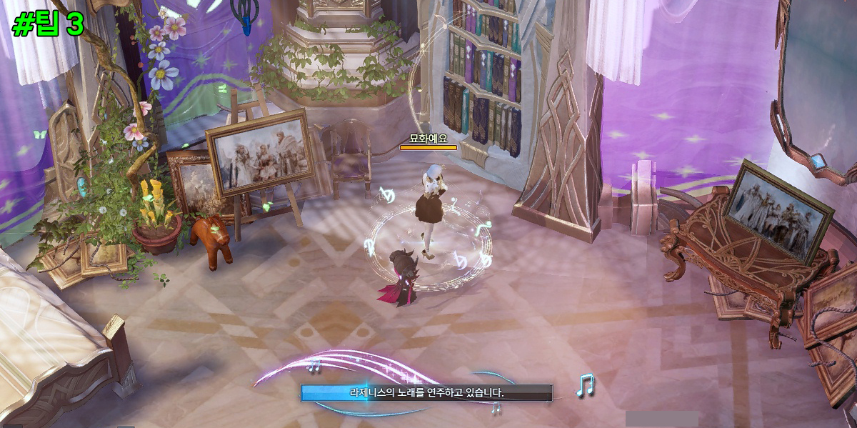 니나브의 방안의 책장 앞에서 라제니스의 노래를 불러주세요.