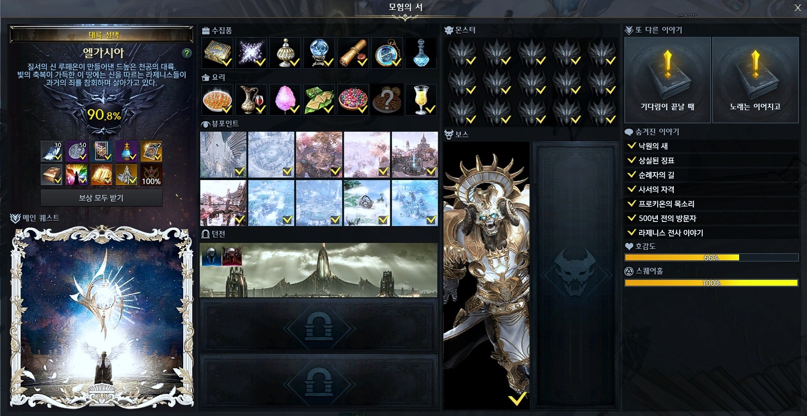 모험의 서 70% 달성 보상 라제니스의 노래