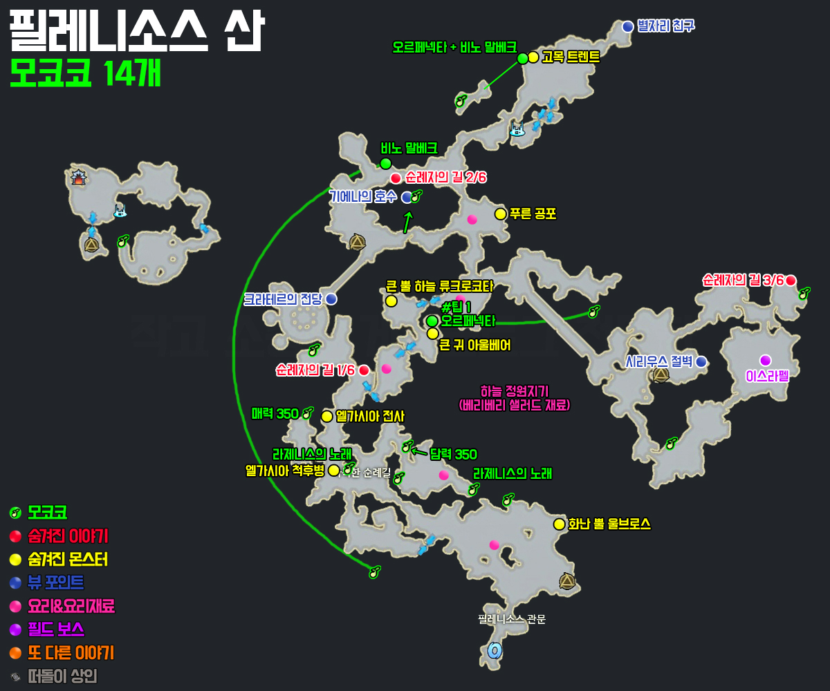 └ 레드 베리 15개, 블루 베리 4개, 블랙 베리 1개 - 헤스테라 정원, 필레니소스 산 하늘 정원지기 처치 시 확률 드랍