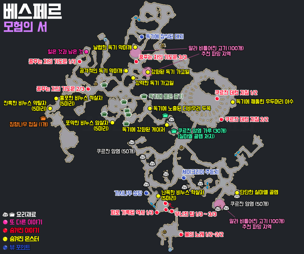 └ 말라 비틀어진 고기 100개 - 베스페르 몬스터 처치 (이미지 표기)