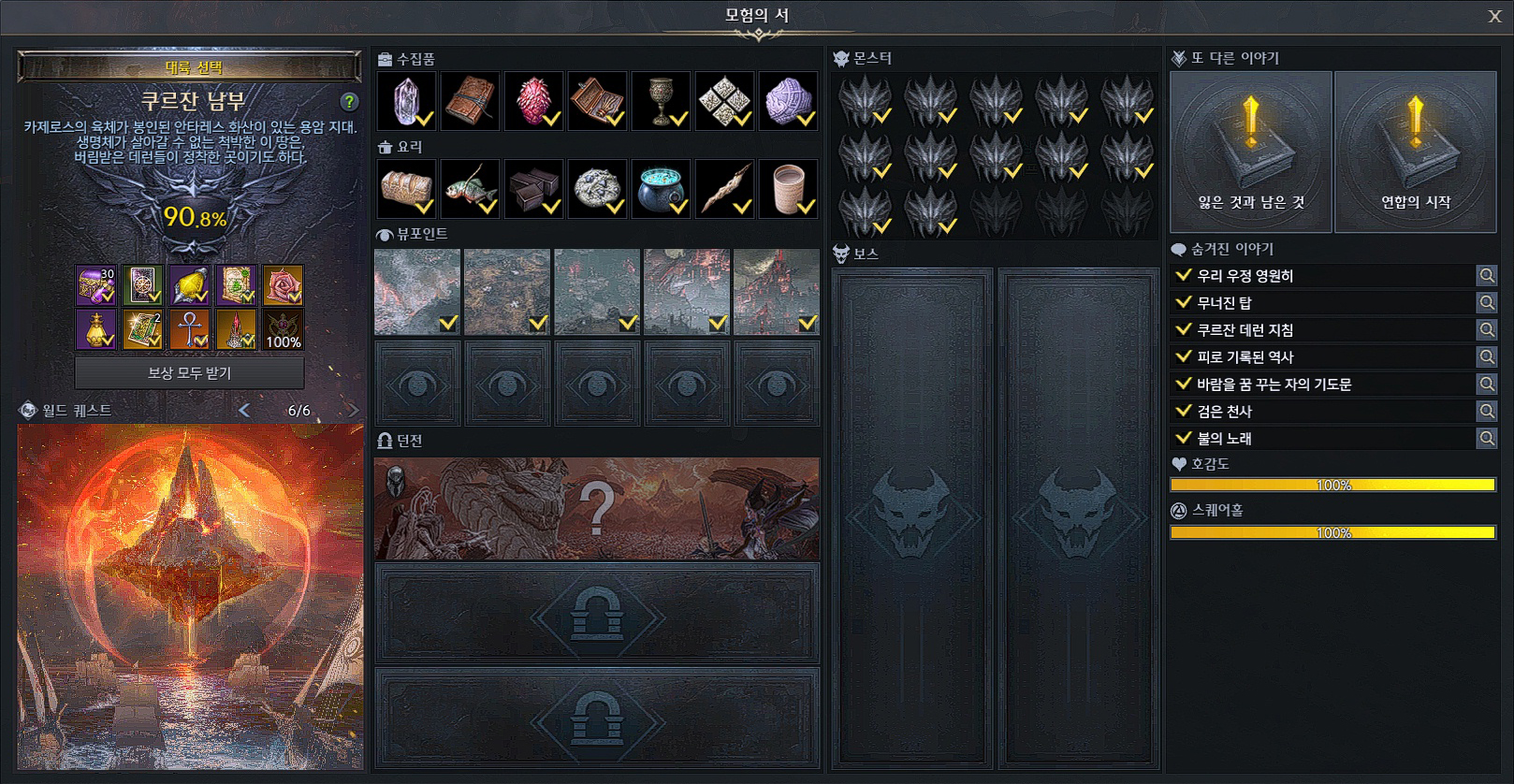 ※메인&서브 퀘스트를 모두 진행한 기준으로 작성되었습니다.