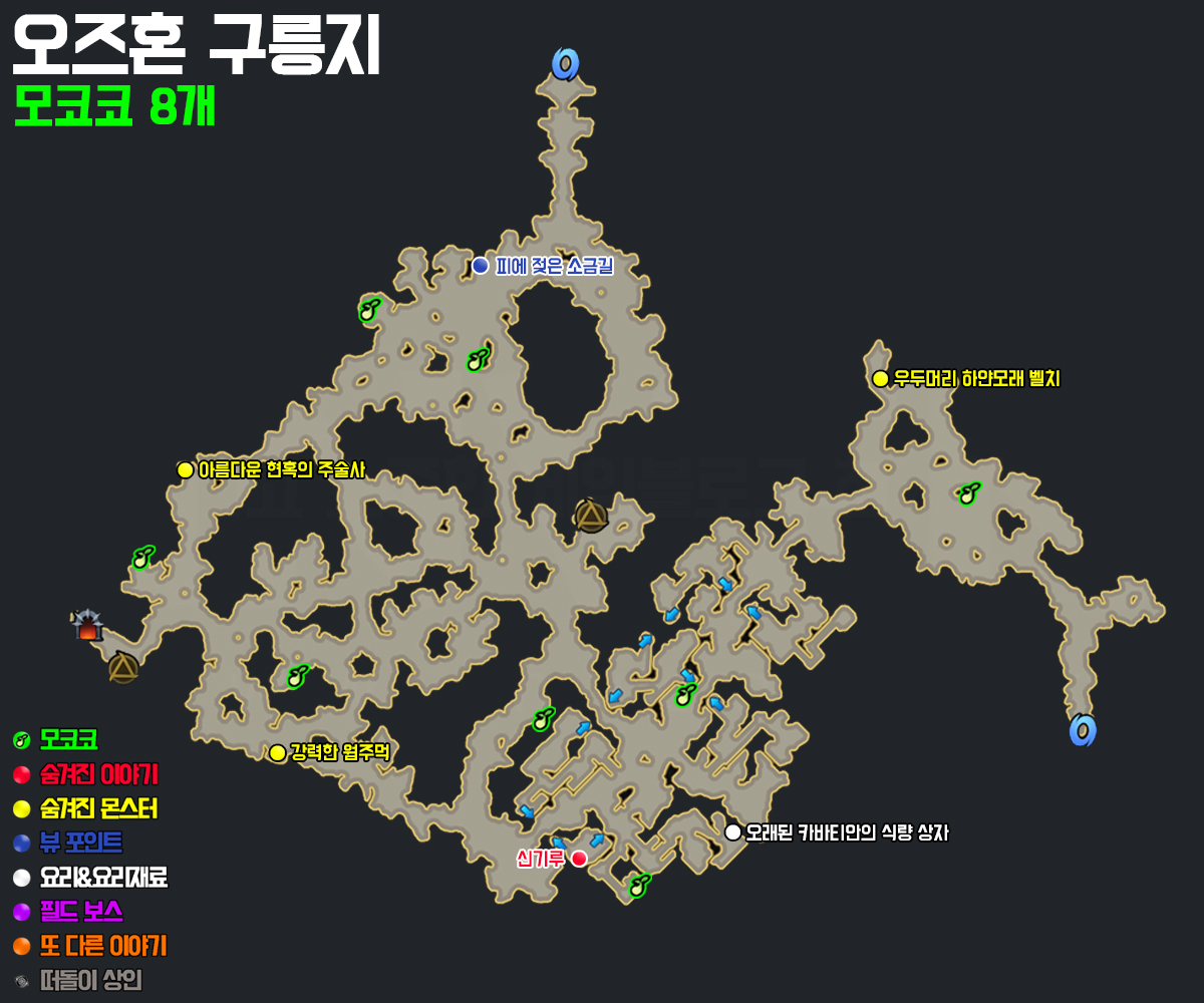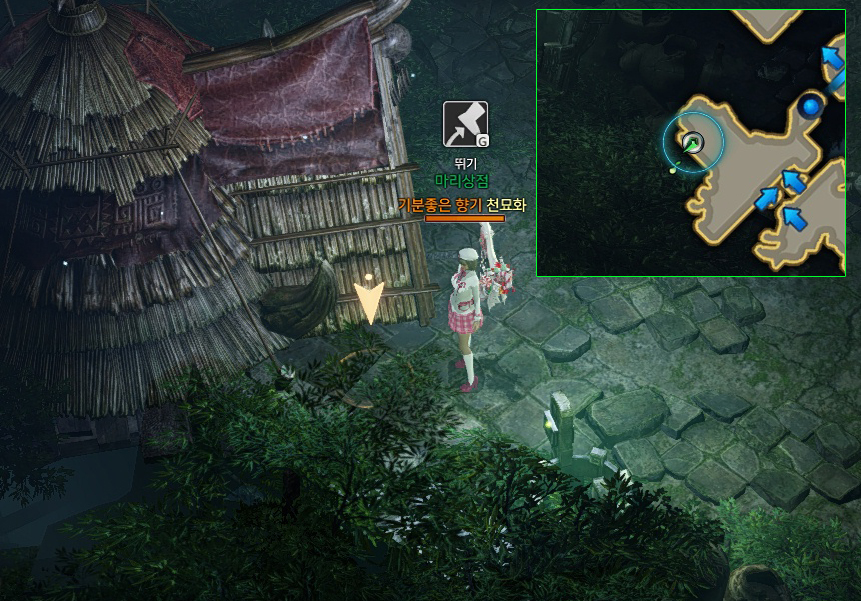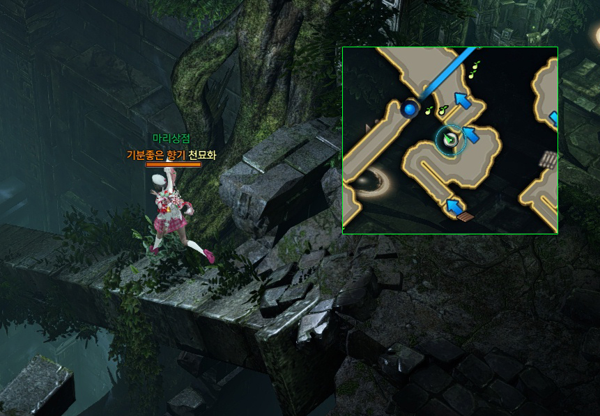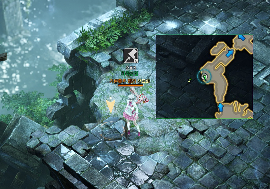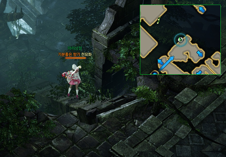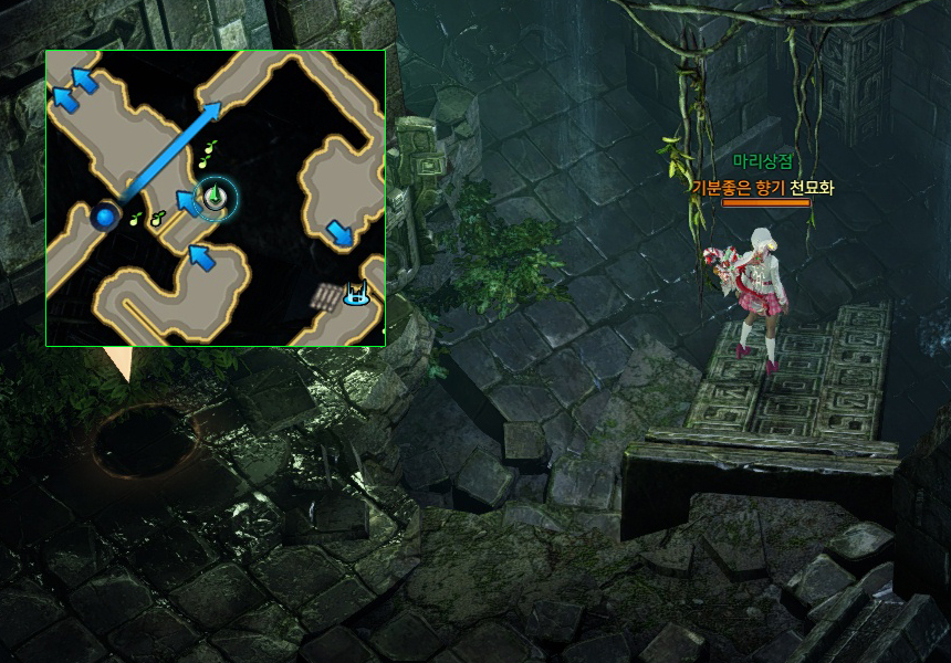 주변 몬스터 처치 후 올라가지 말고 왼쪽 길로 내려가면 됩니다.