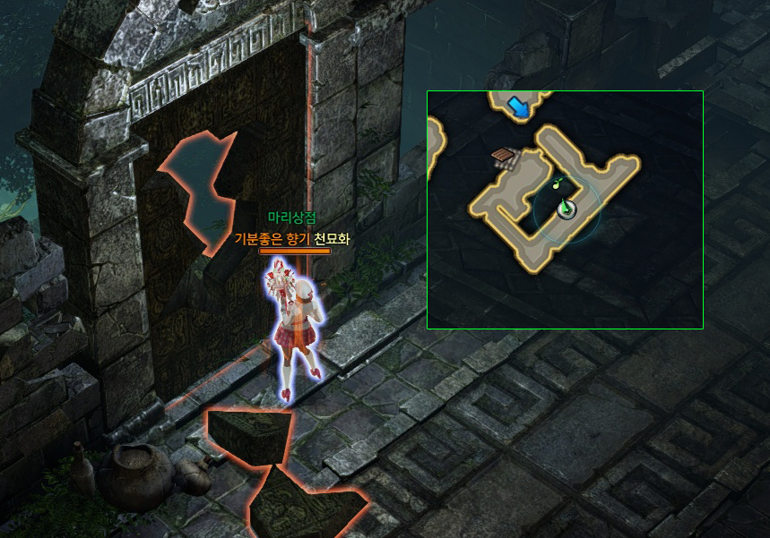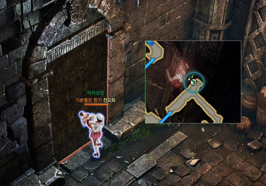 주변 몬스터 처치 후 벽을 부수고 들어갈 수 있습니다.